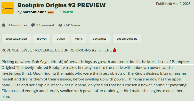 “Boobpire” began as a one-shot first released in late December 2010 for Botcomic’s Breast Expansion Story Club (BESC).