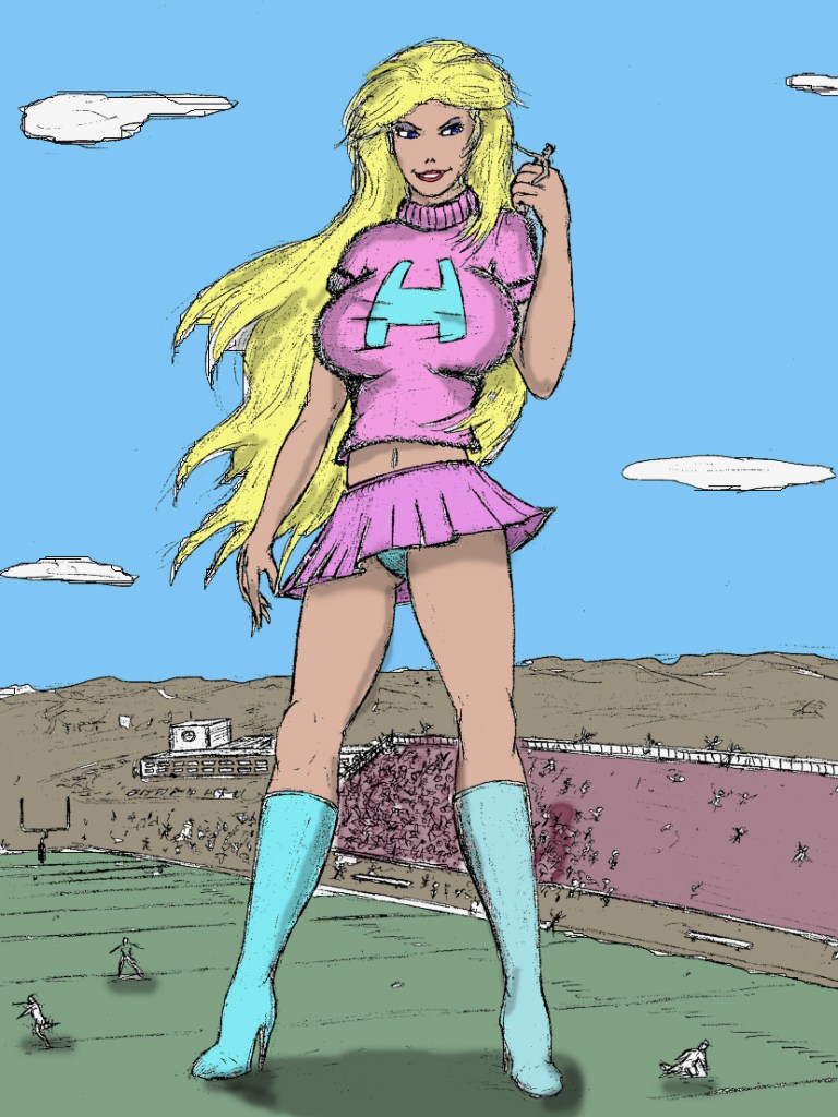 I’ve been writing fantasy and science fiction seemingly forever. When the hormones hit, my daydreams switched from big critters to big girls. What really lit the afterburners was realizing I could write (and try to draw) giantesses. My first sketched were appalling. The writing wasn’t much better. But ignorance is a powerful tool, I created for myself, believing I was the only nut afflicted with this fantasy.