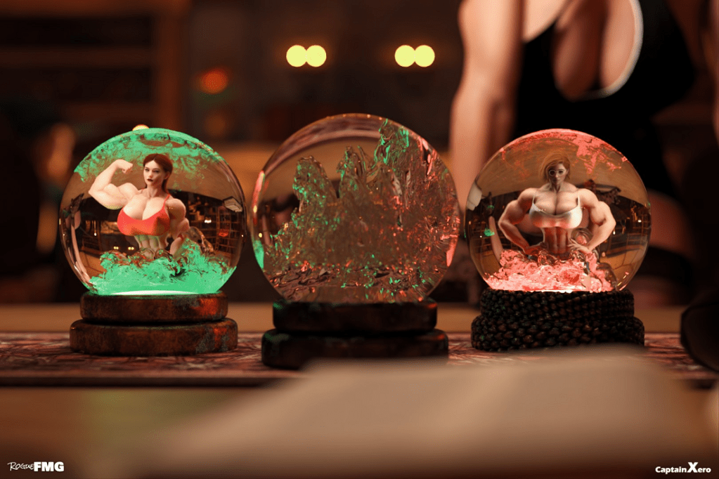 Today we will examine an illustrated story from a new CGI artist, RogueFMG, whose work has never been reviewed at There She Grows before. (SIDE NOTE: Although Tetsu referenced them in an interview.) Given the acronym FMG (female muscle growth) suffixed to their pseudonym it should come as no surprise that RogueFMG’s DeviantArt (DA) page (click here to check it out) is chock-full of exceptionally buff and swole ladies. RogueFMG created this artwork using Blender, Daz 3D, and ZBrush software.