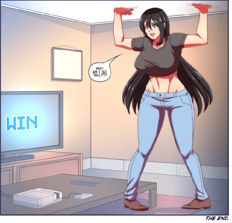 Nudity and sex acts were still absent. Although, there were numerous representations of a pair of scantily clad busty ladies. The trope of irregular growth was added to this series during a sequence when Blake briefly glitched after gaining “so many levels at once” which was more than the game could handle.
