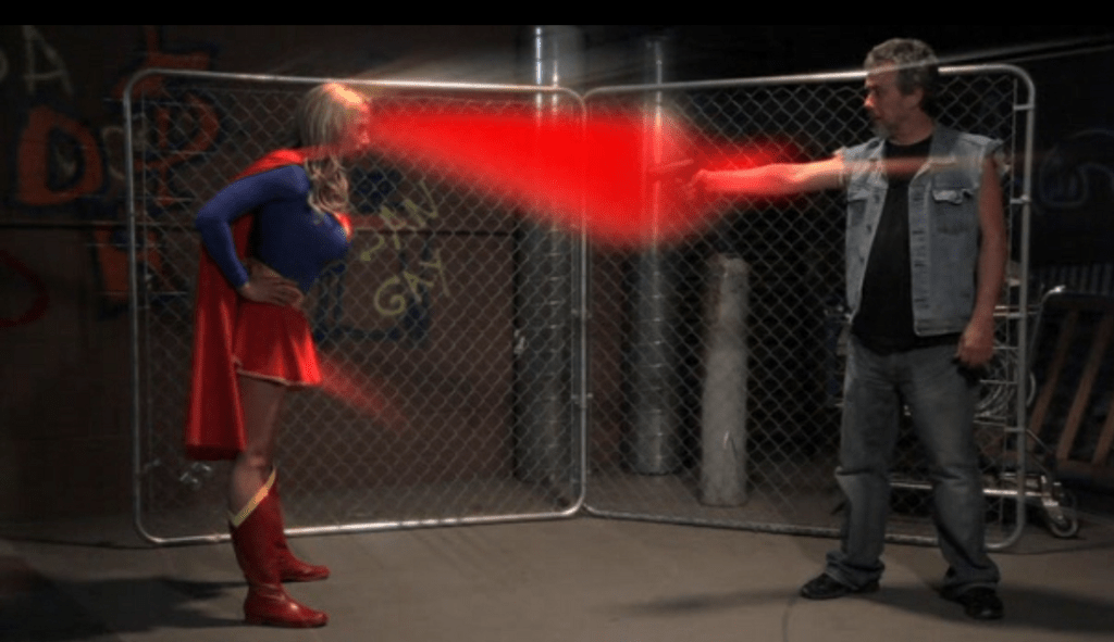 Plixar did the visual effects which included brief scenes of Supergirl flying, a bullet bouncing off her eye in a recreation of that scene from 2006’s Superman Returns, heat vision, and X-ray vision. These special effects were not great, but an attempt is better than nothing.