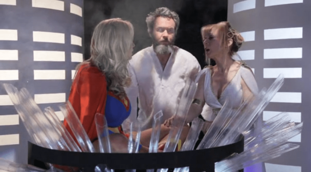 DC super heroes (particularly Superman) often went to great lengths to avoid killing. On rare occasions, such as in 1988’s comic Superman #22 and in 2013’s film “Man of Steel,” Superman killed dangerous and powerful individuals such as General Zod. Nonetheless, those were rare occurrences and did not appear during the Silver Age from which this parody took its inspiration. Thus, it was surprising to see a “good” character nonchalantly kill someone in a parody which otherwise took pains to respect the source material. Strange that the creators did not make the character in question merely knock out their opponent. Predictably, Supergirl XXX did not explore the consequences of killing. In fact, a sex scene in the college dorm room immediately followed the shooting. This did not ruin the film, the killings were not treated in a serious manner, but it was unexpected. Someone could make an argument that a doctor did not call the time of death thus maybe the shootings were not actually fatal. Perhaps a paramedic rushed in off-screen to save the person and perhaps I’m the Queen of England 😉