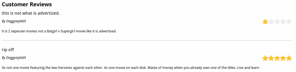 Hot Movies had these customer reviews. (SIDE NOTE: I am puzzled why commenter Doggystyle69 called this a “rip off,” but still gave it a five star rating.)