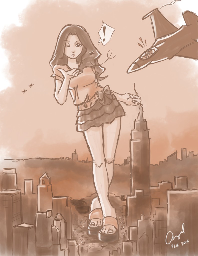 Well, around these parts I go by Angel. I’m just your typical gal into typical things like tiny civilizations falling under the mercy of gigantic body parts. I’m a lot more low-key than a lot of giantesses in our circles, as ironically, I can be a painfully shy dork. I’ve bounced in and out of the online size community for longer than I’d like to think about. Made a lot of treasured connections. Over the years I’ve dabbled in writing stories, role-playing and collage making as a hobby. It felt great to be able to share this interest with like-minded humans across the globe (in that it made me feel a little less crazy to know there were a lot more crazies out there). After life threw more than a few hurdles my way, I started to do size art commission work. I was an art major and always loved illustrating, and to this day, that’s what helps me pay the bills.