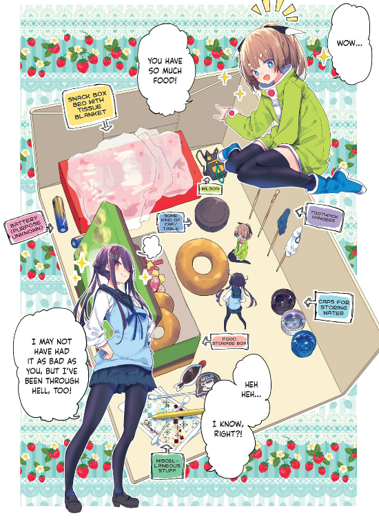 Matters also became more complicated when another small person, Nae Nakano, appeared. Nae was younger than Nozomi and a bit shorter standing only 10-cm tall. Like Nozomi she also woke up shrunk and with amnesia. Nae and her hamster Tappy then rescued Nozomi from a vicious black cat. Together the two tinies tried to solve the mystery of their missing memories and diminished statures. Readers familiar with “The Borrowers” by Mary Norton may appreciate the depiction of tinies re-purposing human items to build their living spaces.