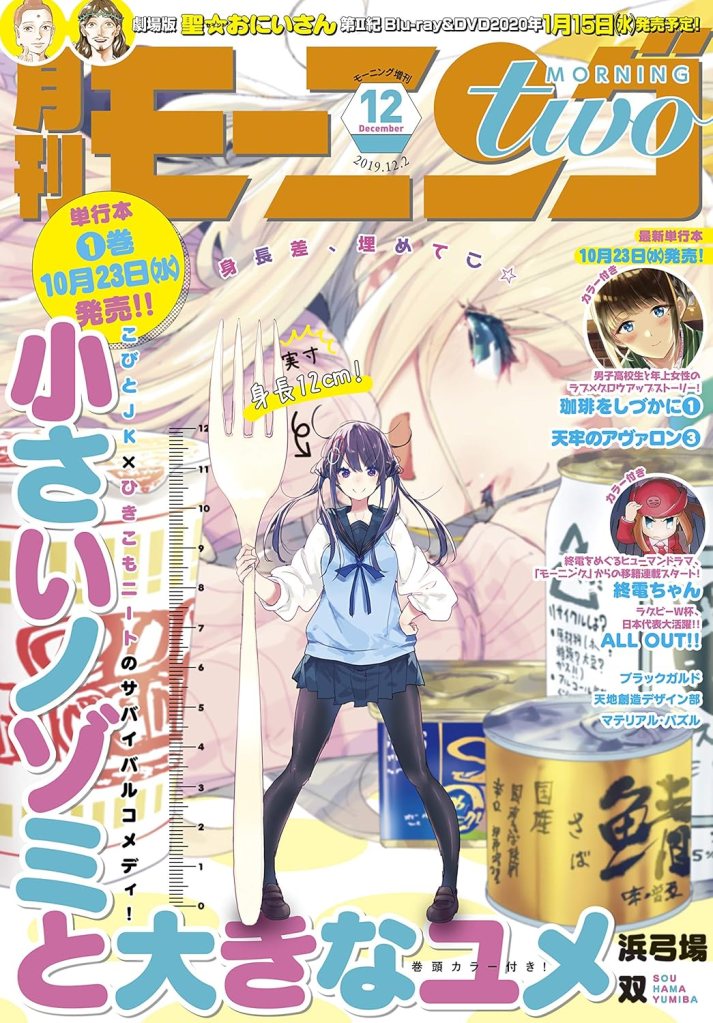 Small Nozomi and Big Yume first appeared in Monthly Morning Two (a.k.a. Morning Two) in May 2019 and ran until January 2021. (NOTE: Monthly Morning Two 月刊モーニング・ツー is a seinen magazine catering to young adult males. Therefore, don’t expect nudity or sex.)