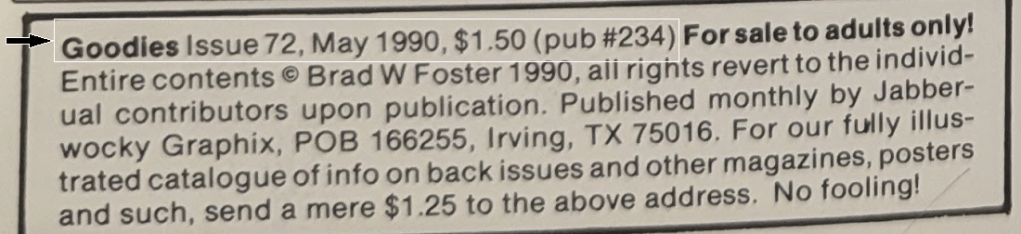 Brad Foster sells hard-copies of Goodies and The Adventures of Olivia at the following site: https://www.jabberwockygraphix.com/adultmain.html I briefly corresponded with Brad in July and he confirmed that The Adventures of Olivia #2 & #5 and Goodies #72 were the only comics with size-fetish stories. Goodies #73 has a cover with a fairy sitting on a mushroom, but according to Brad there is “nothing inside about size changing.