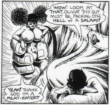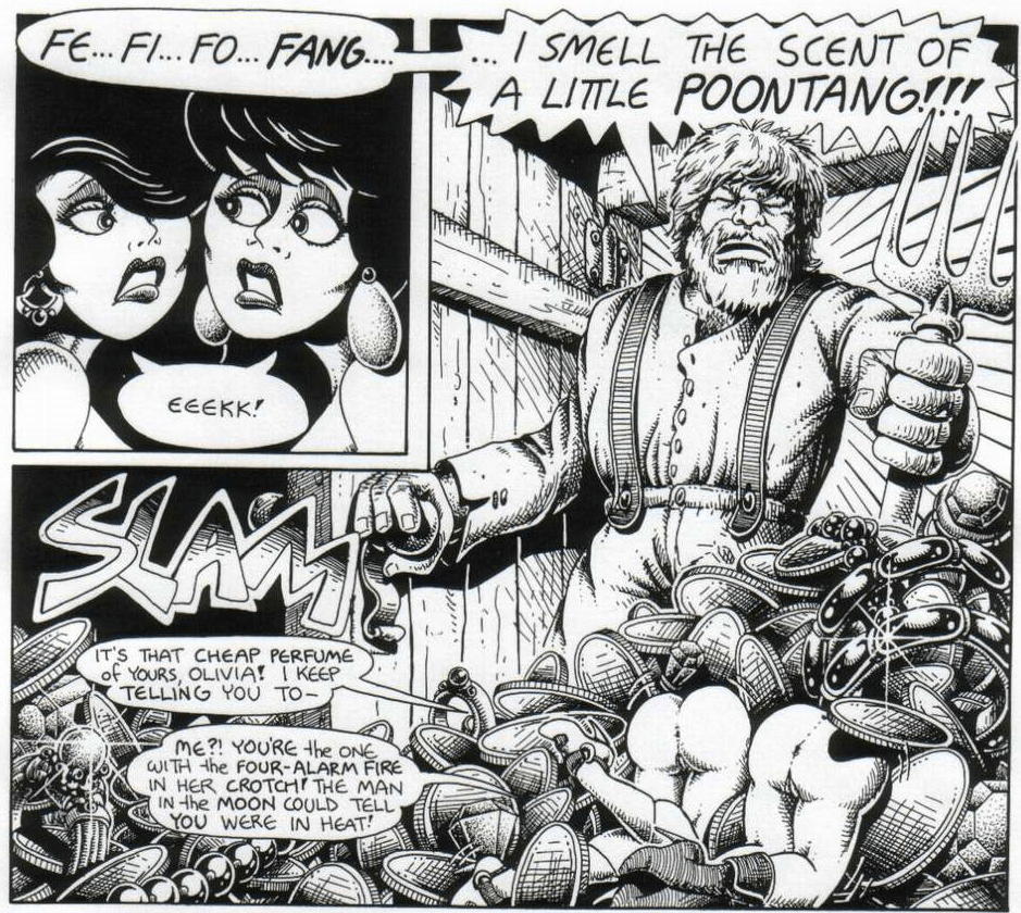 In contrast to Goodies #72, The Adventures of Olivia is more explicit. Women got naked in Goodies, but both men and women got naked in Olivia’s story. Furthermore, people fuck in Adventures of Olivia! If you’re familiar with the MPA film rating system then Olivia would be NC-17 (or X-rated) compared to Goodies R-rating. (SIDE NOTE: Olivia’s comic also contained “Olivia’s Model Man” and “The Housewife’s Handy Helper” which did not include size fetish themes.)