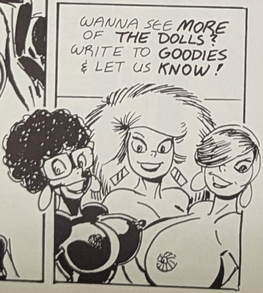 Overall, I recommend both comics. Although, Goodies #72 is short and lacks sex so it may have more value as a historical piece (a comic emphasizing the sex appeal of supernaturally small women when such was rare if not completely unknown) than erotica. To be clear this may be the first-ever adult comic in which shrunken ladies are nude and unabashedly flaunt their sex appeal. For instance, in one panel a naked Lash tells a pair of goons “How about a little piece of pussy boys?” Goodies #72 created a team of super heroines who could shrink (I for one would love to see a continuation), but it seems that after 34 years we will not see any more of The Living Dolls.