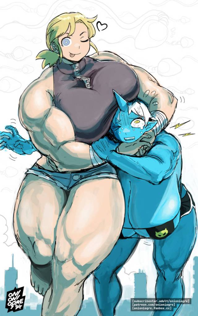 OniOniOgre is a size fetish artist who draws giantesses, giant sperm, intersex characters (a.k.a. futanari), hyper-sized cocks, and shrunken people. This artwork covers themes such as breast expansion and overall growth, sometimes up to cosmic dimensions. The end result is not safe for work (NSFW) and explicitly sexually. Normal-sized characters are often depicted looking up at vastly larger ladies from a very low perspective. A few of these giantesses were modeled on Japanese “Oni” 鬼 which are roughly equivalent to English ogres. Oni are often large, muscular humanoids wearing tiger pelts and with one or more horns in the middle of their foreheads. Fans can find this artwork at DeviantArt and Newgrounds. They can also follow OniOniOgre on Bluesky and X/Twitter. Lastly, folks can support OniOniOgre via Patreon, Pixiv Fanbox, and SubscribeStar.