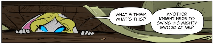 In contrast, Neobunnicon is not the least bit scary. Although, to order to be completely accurate, I must note that a desiccated corpse was shown in one panel. However, the man’s cruel fate was not dwelt upon and there was no other blood or guts. Scary movies often include a large number of characters to serve as fodder for a monster or slasher, but in Neobunnicon there were only three speaking characters. None of them were hurt.