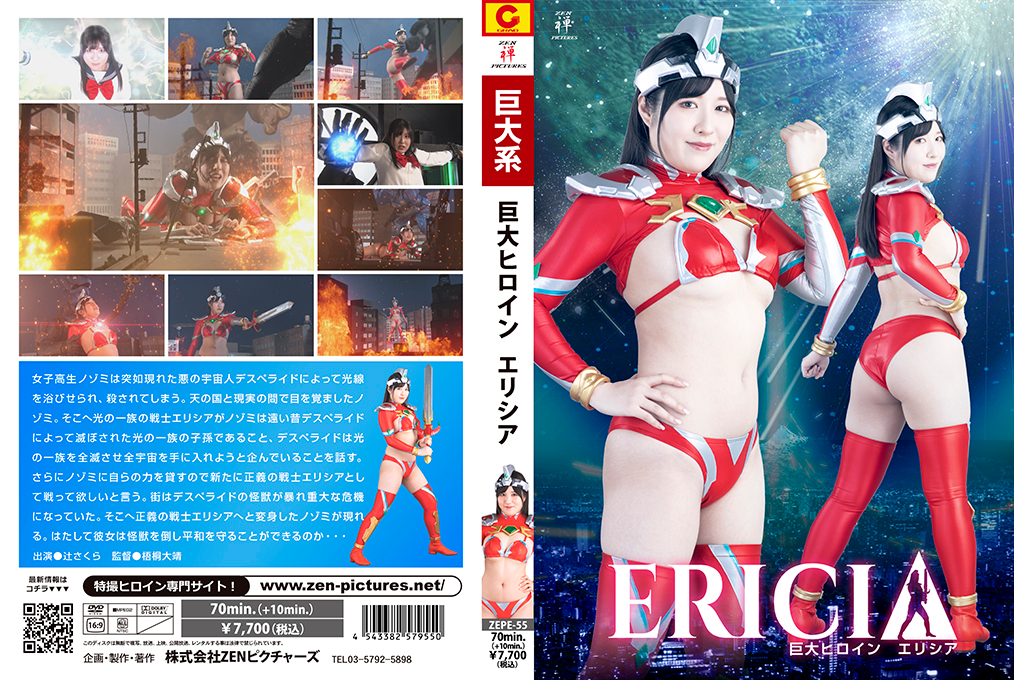 ZEN Pictures released Giant Heroine Ericia on February 23rd, 2024. It has a 70-minute runtime and features Sakura Tsuji 辻さくら as the lead actress. Sakura has appeared in three productions so far for ZEN Pictures. Additionally, Taiyasu Goto 梧桐大靖 is the director.