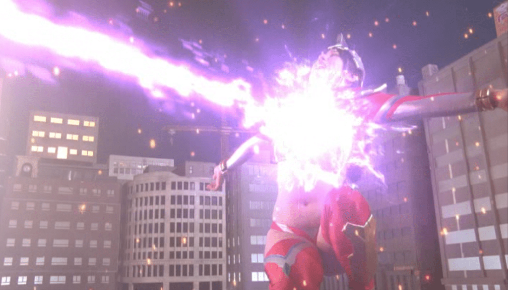 Furthermore, Ericia’s appearance and powers resembled Ultraman, albeit Ericia had a bit more exposed skin. Nonetheless, Ericia could only maintain her giantess form for a limited time and wore a gem on her chest which made noise and flashed just like Ultraman’s color timer. Most importantly Ericia and Ultraman both fought giant monsters via melee and energy beam attacks. Not for nothing, but the energy beam attacks in this movie look pretty good!
