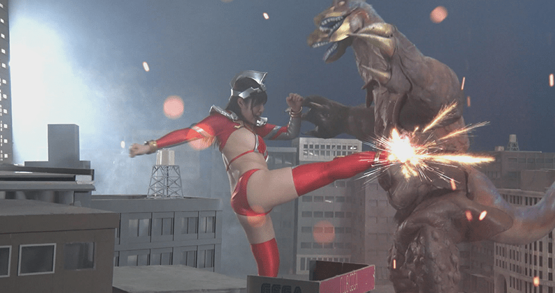 Studios, like Gallop and Giga Co. Ltd, have the financial resources to fund the construction of elaborate miniature city sets, craft custom wardrobes to include large monster suits, hire multiple male and female performers, and render computer-generated imagery (CGI). That may not sound like a lot compared to the Big Five major film studios in Los Angeles, California. Nor do they have the deep pockets of national heavyweights Kadokawa Daiei (current owner of the Gamera franchise) or Toho (owner of the Godzilla franchise). Nonetheless, these small studios have budgets which are larger than the individually-operated companies selling size-oriented clips via Clips4Sale, ManyVids, and OnlyFans. These small studios, influenced by tokusatsu in general but mostly by Ultraman, have the means to make CGI and practical special effects beyond the capability of one-man operations.