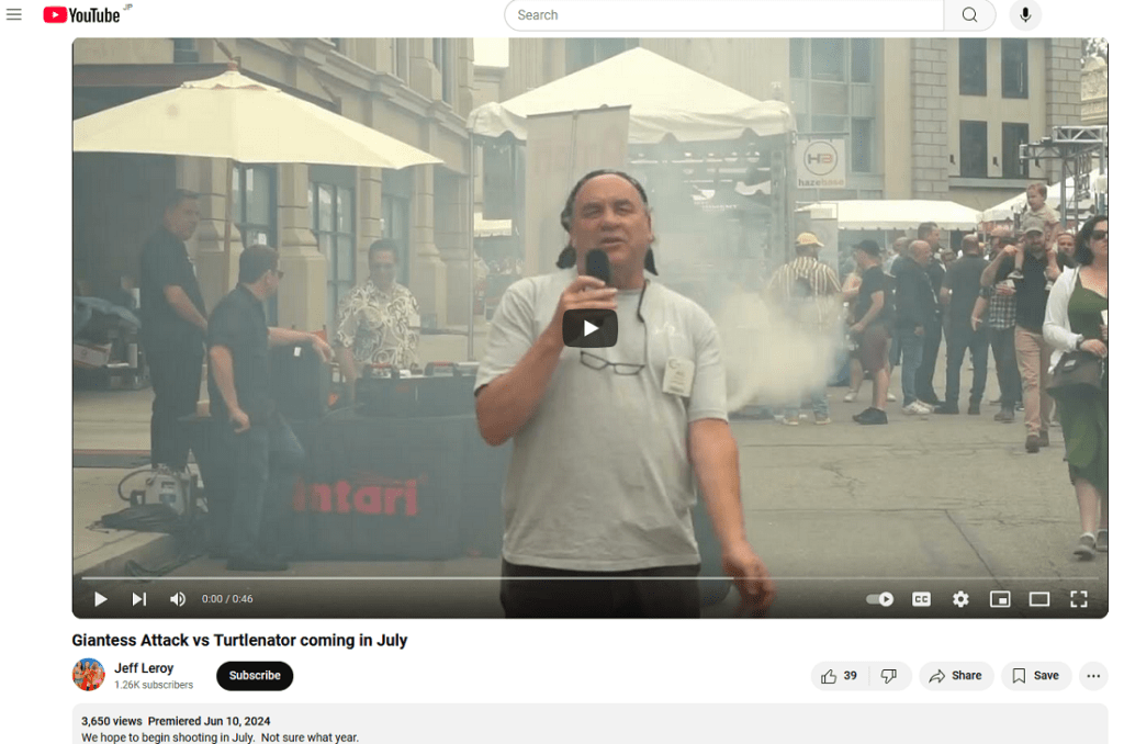 Moving from big budget to micro-budget productions, Jeff Leroy previously released “Giantess Attack” in 2017 and “Giantess Attack Vs Mecha Fembot” in 2022. He uploaded a short video to YouTube on June 10th announcing plans to begin shooting the latest entry in this series, “Giantess Attack vs Turtlenator,” in July 2024. Whether or not he actually started filming is difficult to say. Jeff has not shared anymore pertinent updates via his Instagram or YouTube channel and the movie’s X/Twitter account has been dormant since early October 2023.