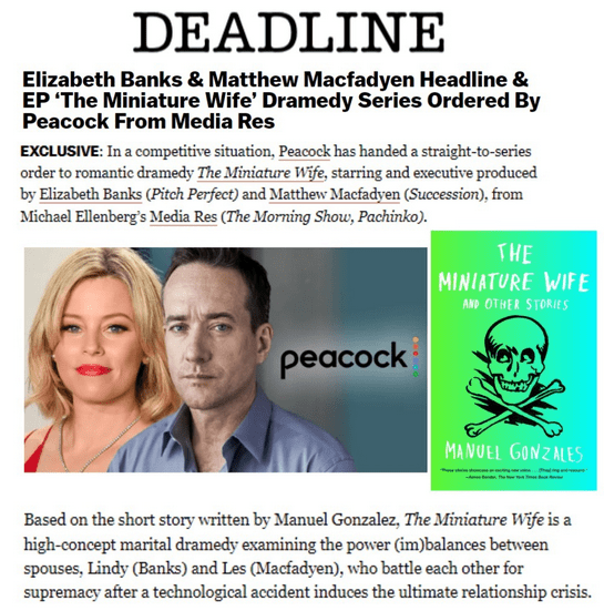 Deadline reported in late March that Peacock, a streaming service operated by NBC, ordered the production of a series entitled “The Miniature Wife.” The series will star Elizabeth Banks and Matthew Macfadyen. I have not read the original story, but am intrigued by the concept of a scientist accidentally shrinking his wife then building a doll house for her new residence. Peacock has not announced an official release date yet.