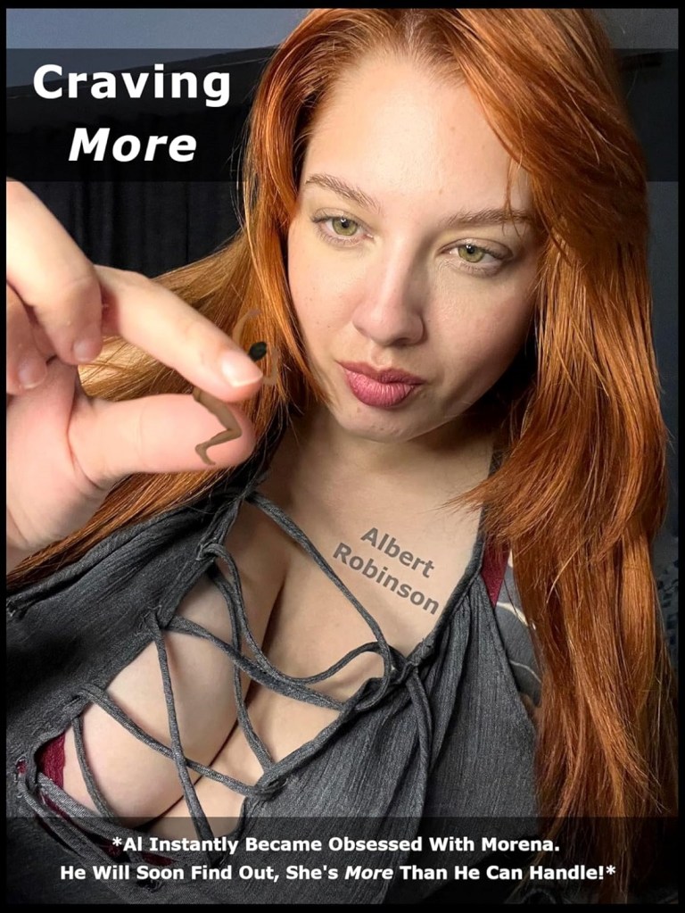 First up, Craving More features a man named Al and an OnlyFans model named Littlecarrott, a curvy red-headed Latina. Al is dismayed that other models refuse to honor his giantess-themed custom requests, but Littlecarrott (real name Morena) is accommodating. Things develop further when Morena mentions that there has been a new technological development in her home country of Argentina which could make Al’s greatest fantasy come true. Sensitive readers are advised that reference was made to a previous lover, Ricky, who did not survive. Nonetheless, for the most part this was a tale of a tiny man and a normal-sized woman consensually engaging in rough hanky-panky.