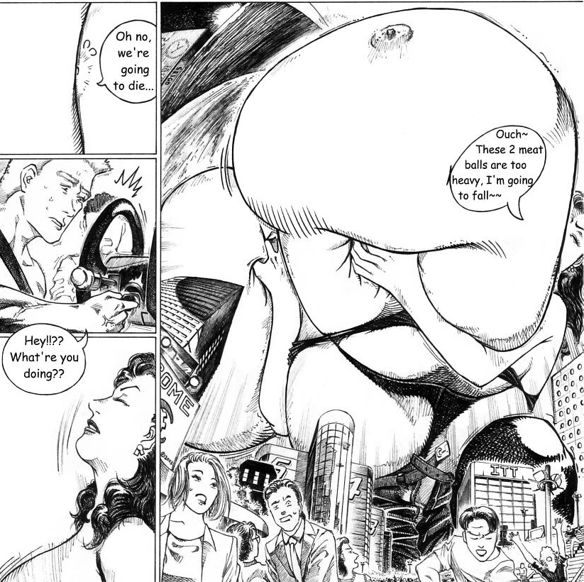 It involves two unnamed women who become taller than skyscrapers. They develop enormous breasts (as giantesses are wont to do) and engage in massive destruction of the surrounding urban landscape. Be advised that there is no dialogue in the Main Story so you must decipher the narrative from character actions and by studying several flashback scenes. Therefore, there is more ambiguity than readers might expect. The giantesses were unnamed and the reason for their transformation was not shown. Although, recalling a traumatizing event appeared to cause one giantess to grow even bigger in the eighth and final chapter “Who Can Stop Me.” So, perhaps a desire for retribution caused their transformation.