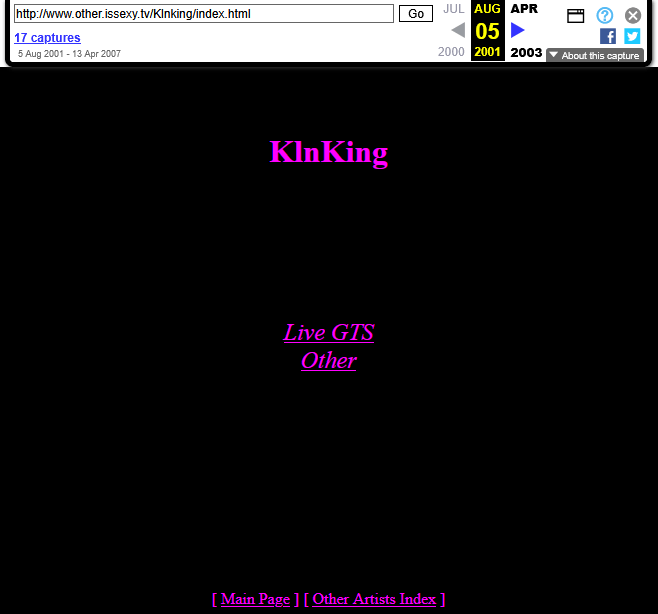 Unfortunately, little is known about KlnKing. To the best of my knowledge he never did an interview nor did he provide even a brief biography. The KlnKing archive referred to KlnKing using “he/him” so we know he used those pronouns, but little else.