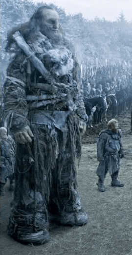 By contrast in the HBO series Game of Thrones, giants had thicker legs than humans to compensate for their greater weight. For example see the Game of Thrones giant Mag the Mighty, played by Neil Fingleton, standing next to a human.