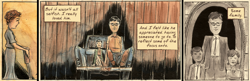 In one instance a CIA doctor asked Craig if there was “any history of disease” in his family. Craig replied “No. Just wars” while three panels showed men dying in World War I, World War II, and the Korean War. That could have been an opening to discuss how those wars during the first half of 20th century affected the surviving family members of American veterans. But that idea never went anywhere. Furthermore, and this is admittedly a very minor point, but that last panel made me wonder who in Craig’s family died in Korean War. Was that poor man a heretofore unmentioned uncle? Although, to be clear, there was also no mention of anyone dying in World War I either, but I assumed that was Craig’s grandfather.