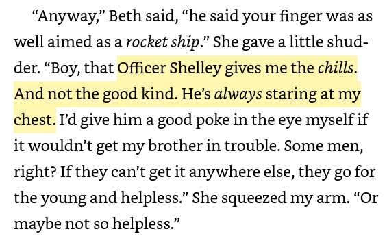 For example, parents may be surprised to learn that this had a police officer leering at under-aged girls and trying to take them home.